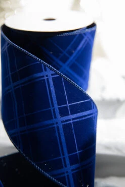 4β X 10 Yard Midnight Blue Embossed Plaid Velvet Wired Ribbon