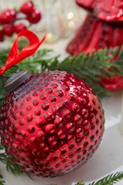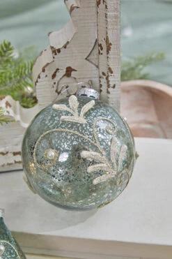 4″ Round Antique Mercury Glass And Botanical Gold Etched Ornament