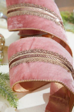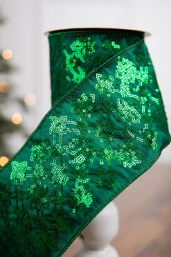 4β X 10 Yard Metallic Dot Velvet Wired Ribbon – Green/Gold