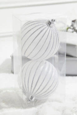 4.5β Opaque Silver Glitter-Lined Ball Ornaments – Set Of 2