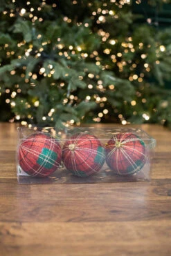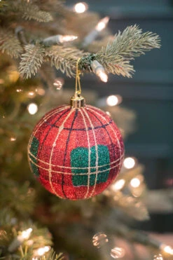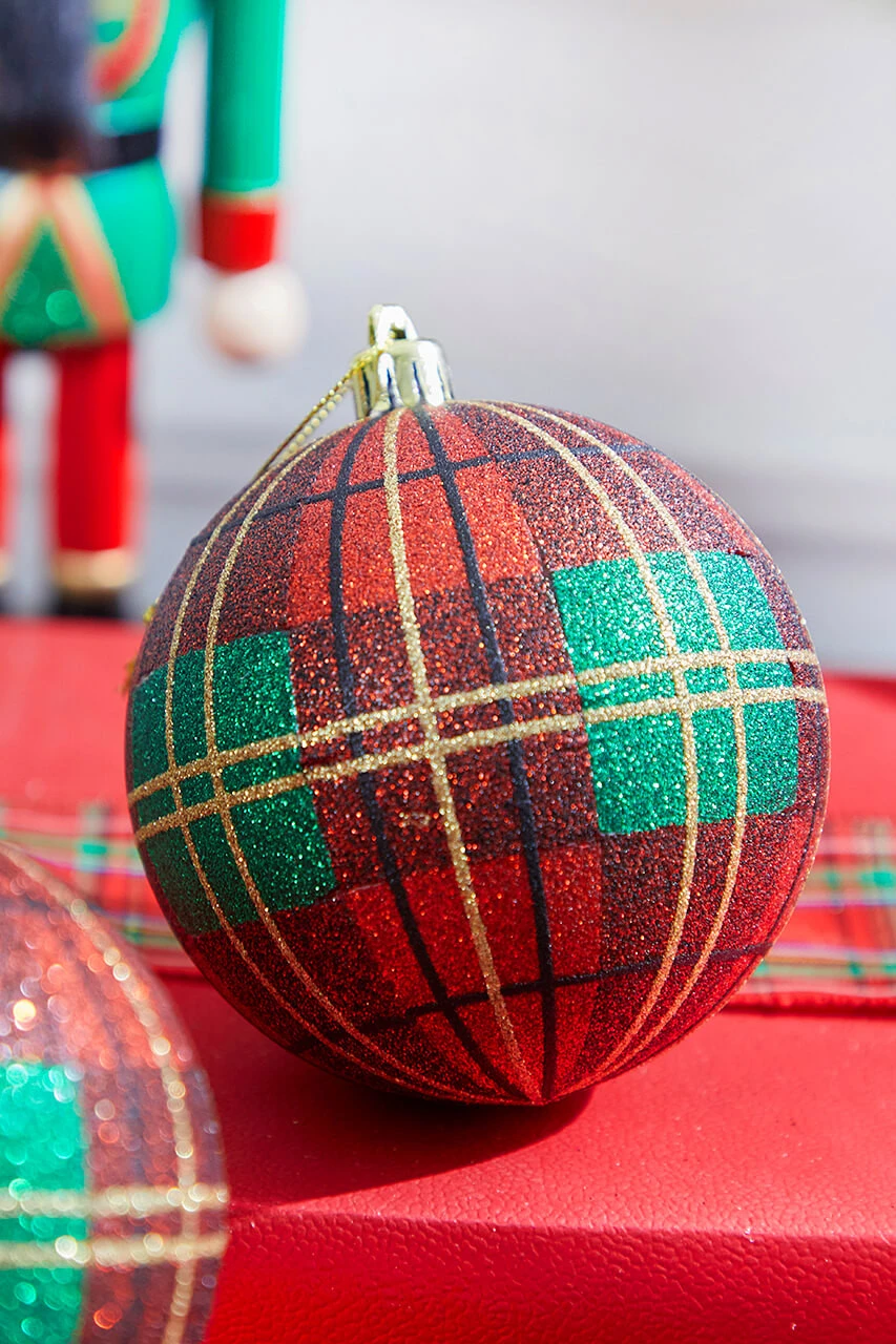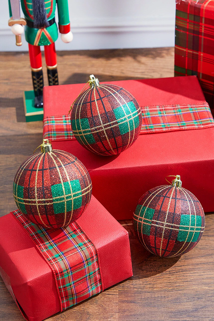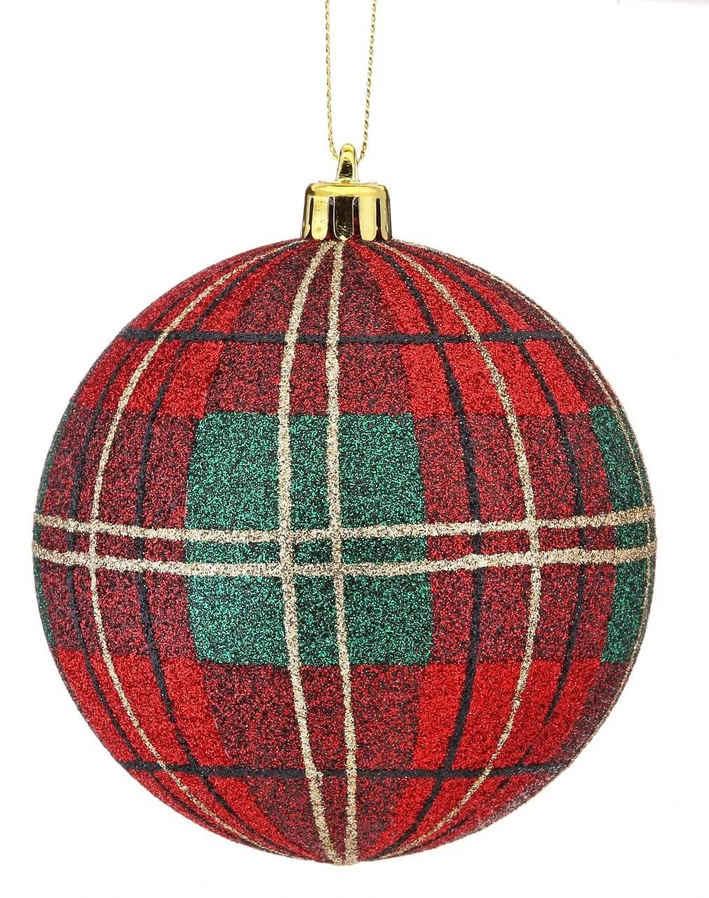 10 CM VP Glitter Plaid Ball Ornament – Box Of 3