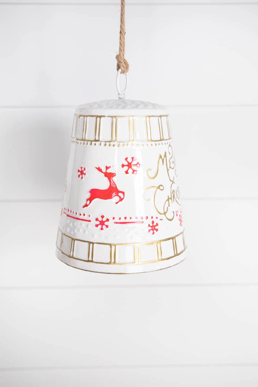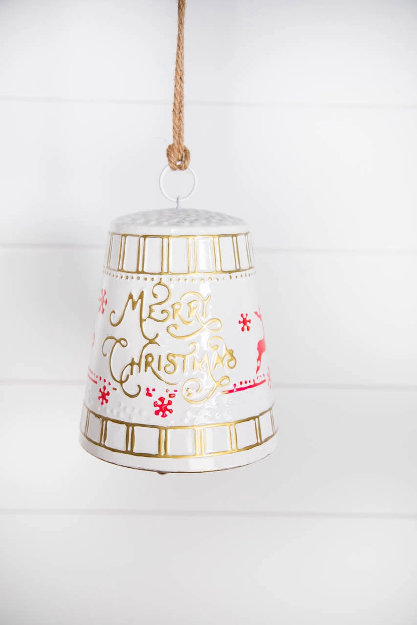 This Metal Christmas Bell comes in three distinct white, red, and green options, fashionably ornamented with either “Merry Christmas” scripted or a pattern of reindeers and trees. These are perfect to add to your modern and merry holiday decor.