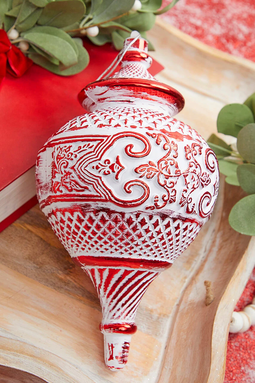 Add a splash of luxury to your cranberry Christmas decorations with a touch of our magnificent 10″ White Red Matte Metallic Finial Ornament. Its exquisite combination of metallic and matte textures crafted into an elaborate red design is a true testament to elegance. Let your celebrations shine brighter and bask in the sophisticated sparkle this gem brings to your festivity. Perfectly sized, undeniably eye-catching, and ready to elevate your home’s festive charm. This ornament also pairs well with red and white peppermint decorations.