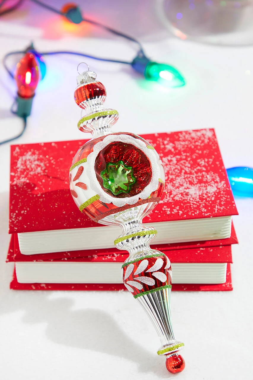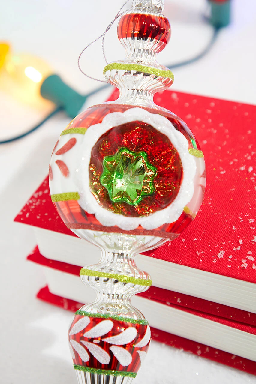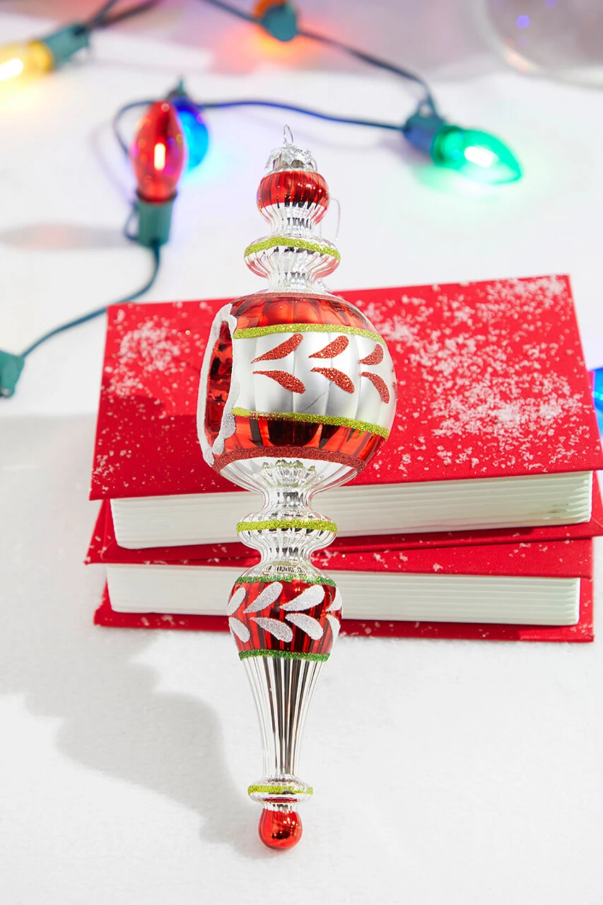 Feeling nostalgic this festive season? This 11″ Red and White Glass Reflector Finial Ornament is your gateway to kindling the spirit of yesteryears! This vintage charmer, with its glossy red and snowy white hues, adds an enchanting retro vibe. It’s not just an ornament, it’s a time capsule of traditional holiday glamour. Gift nostalgia this holiday season with this timeless, handcrafted beauty.