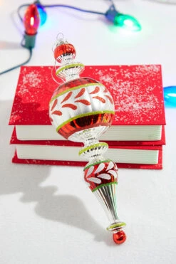 11″ Red And White Glass Reflector Traditional Finial Ornament
