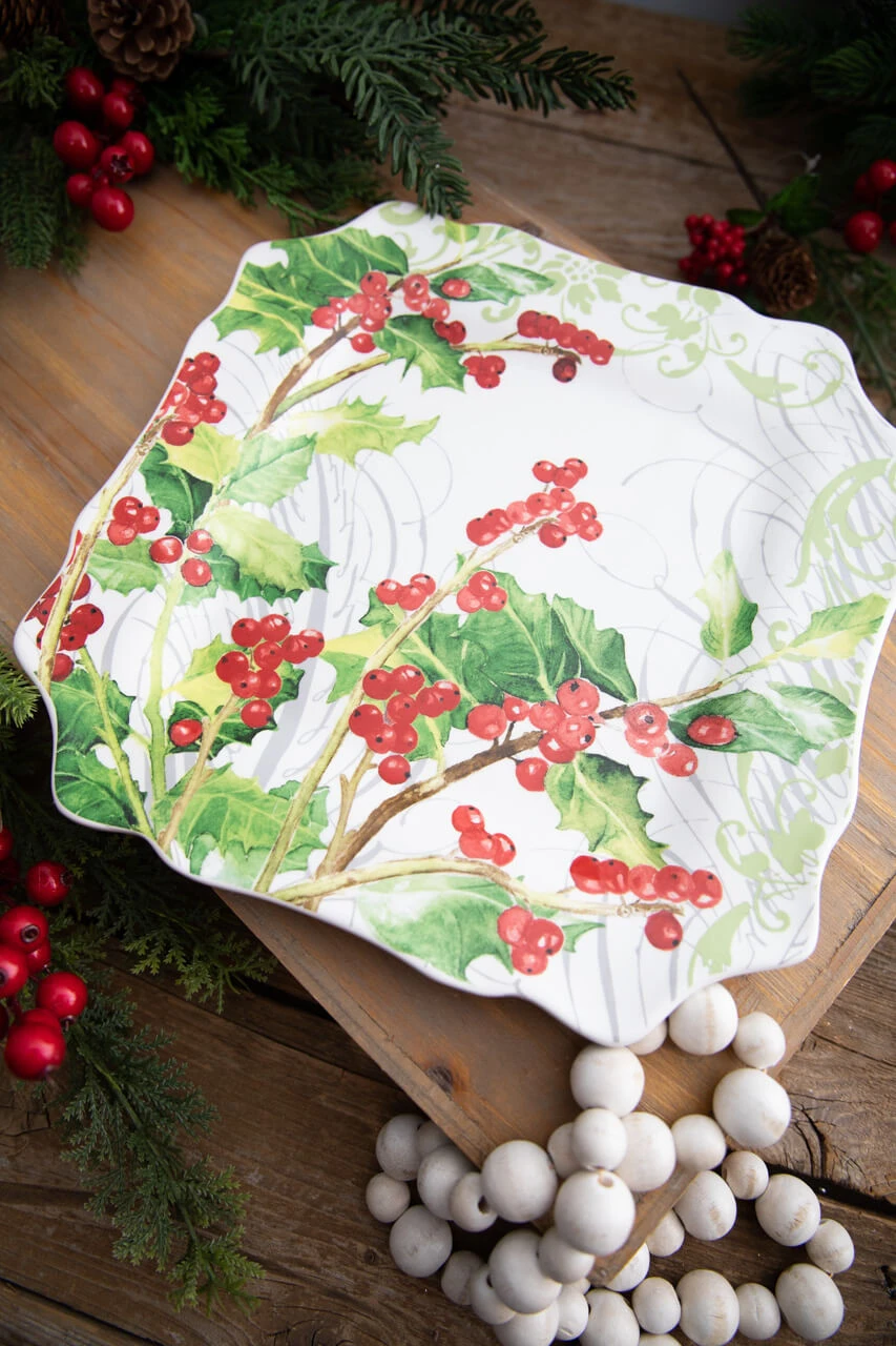12β Ceramic Christmas Botanical Dinner Plates – Set Of 4