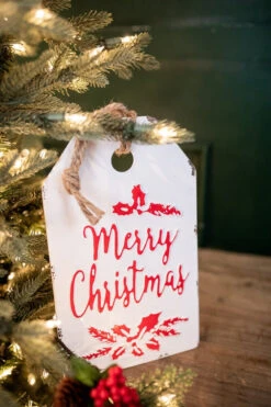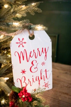 These adorable 12″ metal sign ornaments are just the statement you have been looking for! These large white metal signs will make you feel “Merry & Bright” with their calligraphy font and snowflake accents. Pair with your peppermint themed decor or with plush snowmen and ornaments. These large scale ornaments will look fabulous in your Christmas tree or hanging on a wall.Β