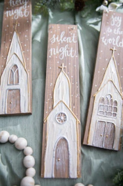 Make this Christmas truly special with a one-of-a-kind 14.5″ Rustic Church Ornament. Choose from three unique options that feature white script and wooden detail. Each ornament is carefully crafted and includes a wire hanger for easy placement. This beautiful ornament is the perfect keepsake to celebrate the holiday season or add to your everyday home decor.