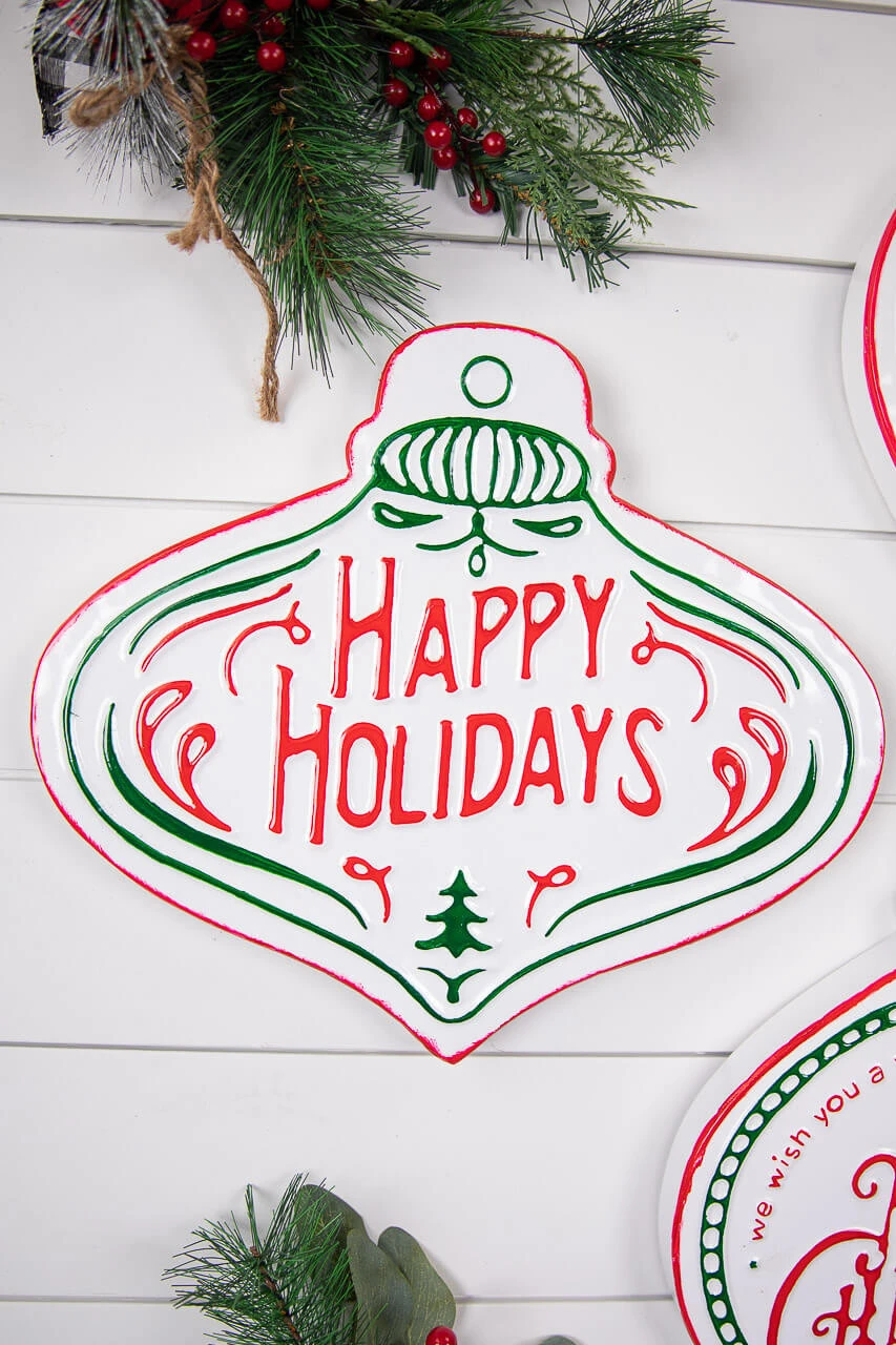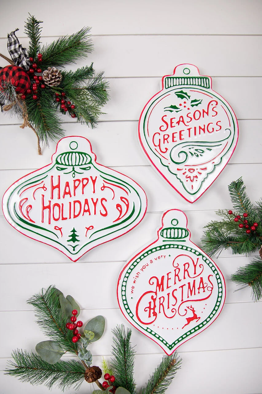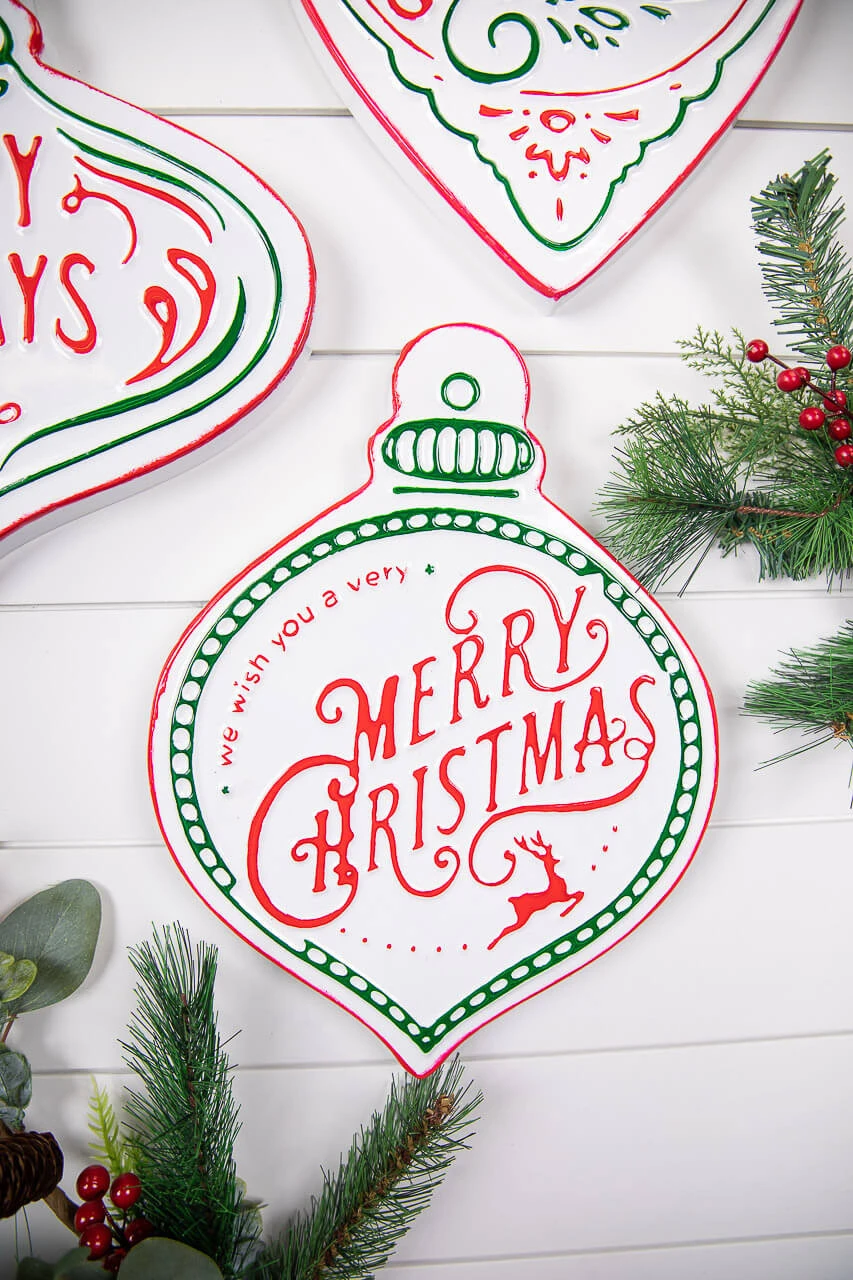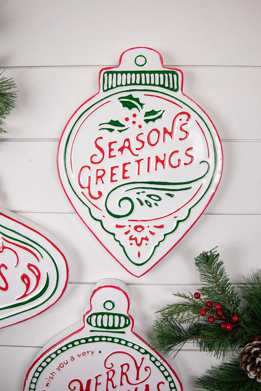 Festive and fun, our holiday ornament signs bring some energy and life to the atmosphere for the holidays. Both styles pair well together or can be displayed individually on an open wall or in a Christmas tree to fill space and add dimension.