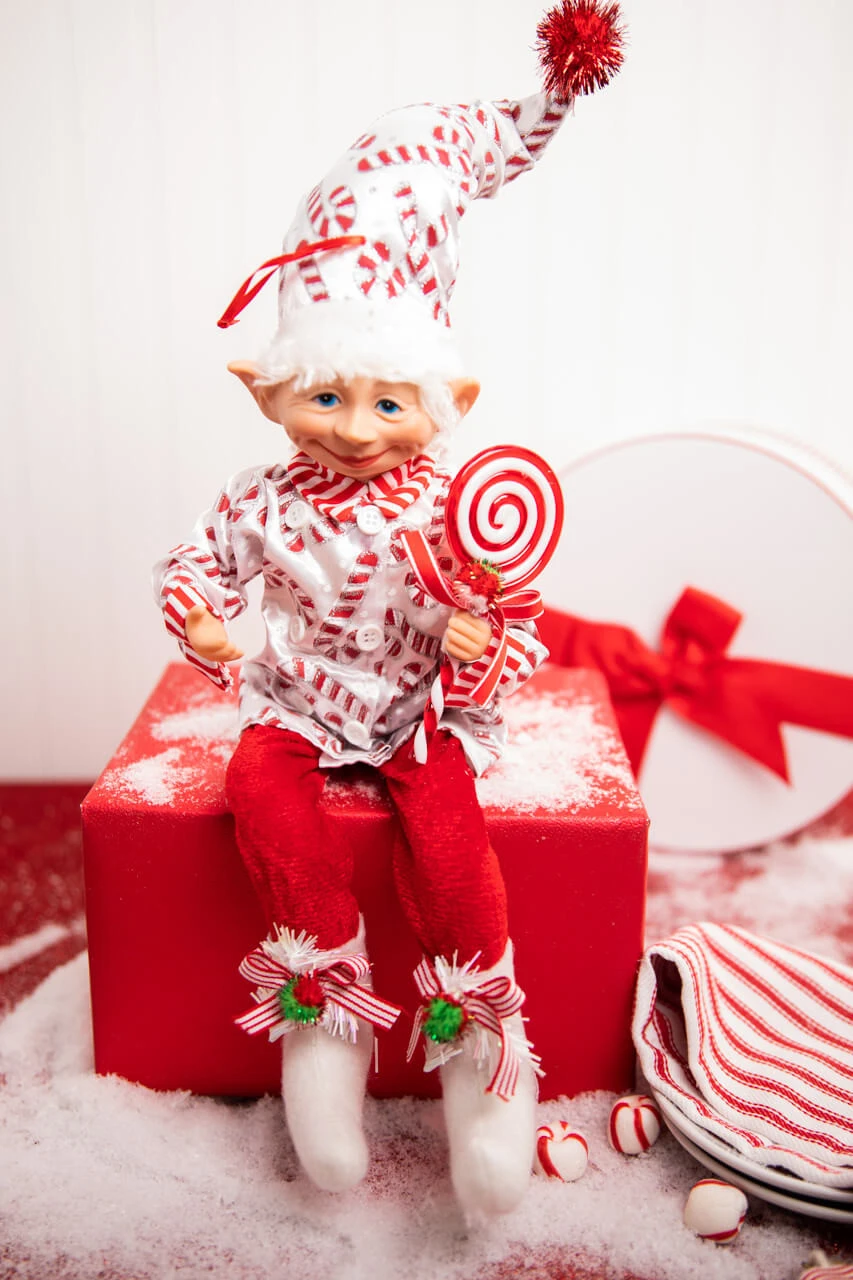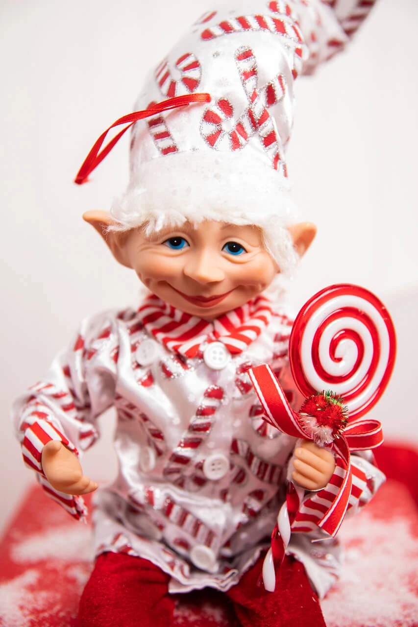 Meet our charming 17β Fabric Bendable Candy Cane Elf, a festive addition to your peppermint collection. This vibrant character sports a candy cane outfit, grasping a red and white lollipop in its tiny hands. A must-have for peppermint enthusiasts, this candy cane elf is the perfect way to amplify your collection. Bring home this delightful character for a more whimsical, magical holiday season.