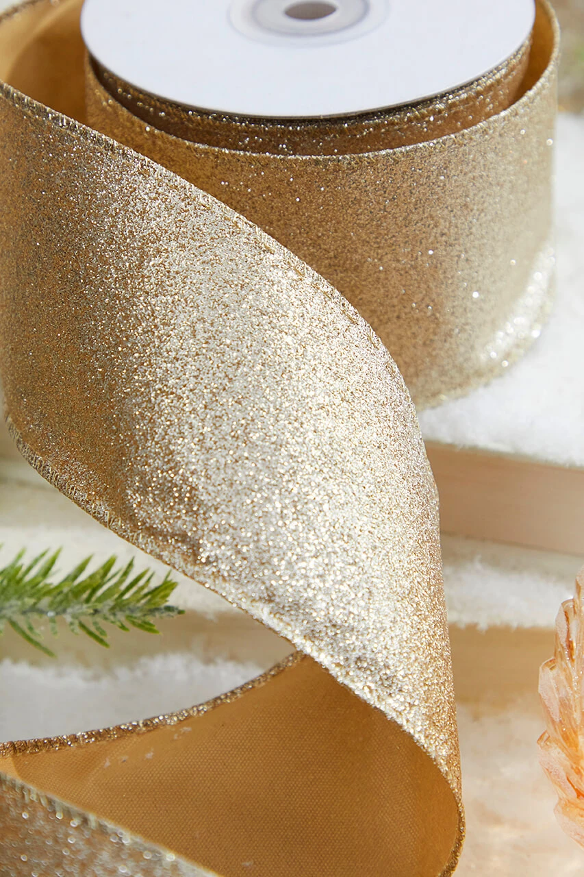 2.5″ X 10 Yard Glitter Champagne Wired Ribbon