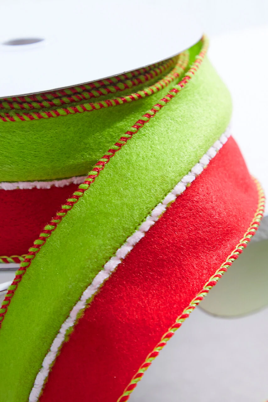 2.5″ X 10 Yard Green & Red Felt Wired Ribbon