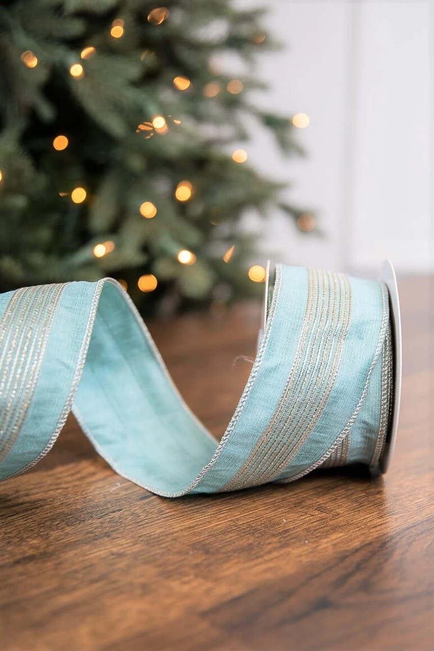 If you’re looking for a unique aqua ribbon, this is it. The Gold Stripe Trim Dupioni Ribbon has a dazzling effect and can be used in smaller decor pieces and Christmas trees for a calming glam vibe.Β