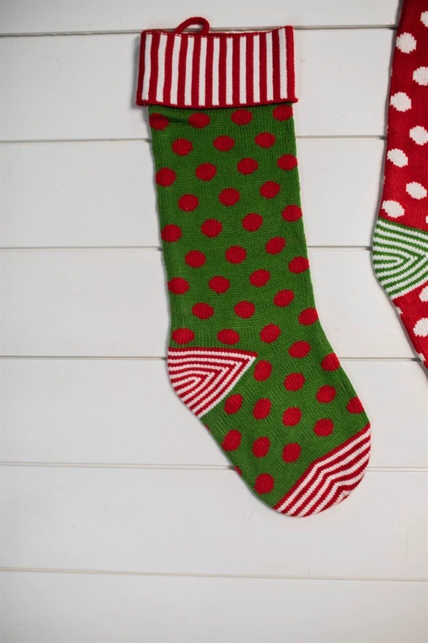 21β Cable Knit Elf Stripe & Polka Dot Stocking