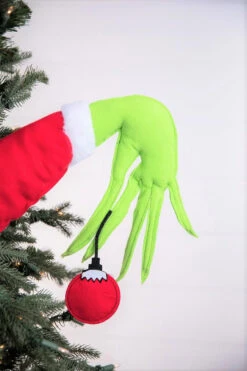 Your home decor will look like it stepped out of the storybooks with this fun green hand pick, holding a red ornament. Enjoy bringing your Green Monster Christmas tree to life with these fun and magical holiday designs.