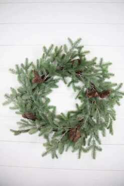 Welcome your guests with the perfect rustic Christmas decoration. Our 24β Fir Pine Wreath with Cones is crafted from thick fir pine branches that are accented with small and narrow pine cones. This lush wreath will brighten up your front door and is the perfect way to usher in the holiday season.Β