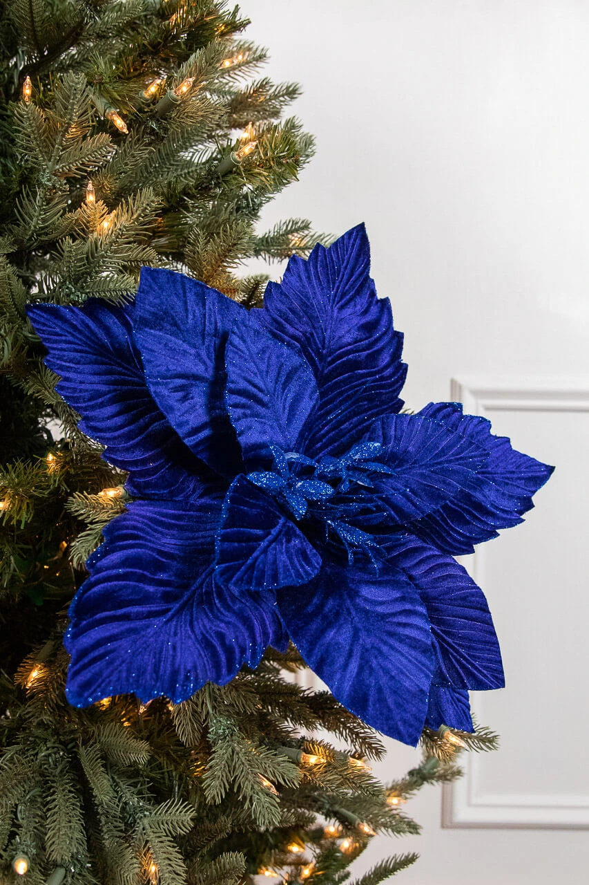 24” Velvet Glitter Lux Poinsettia – Midnight Blue