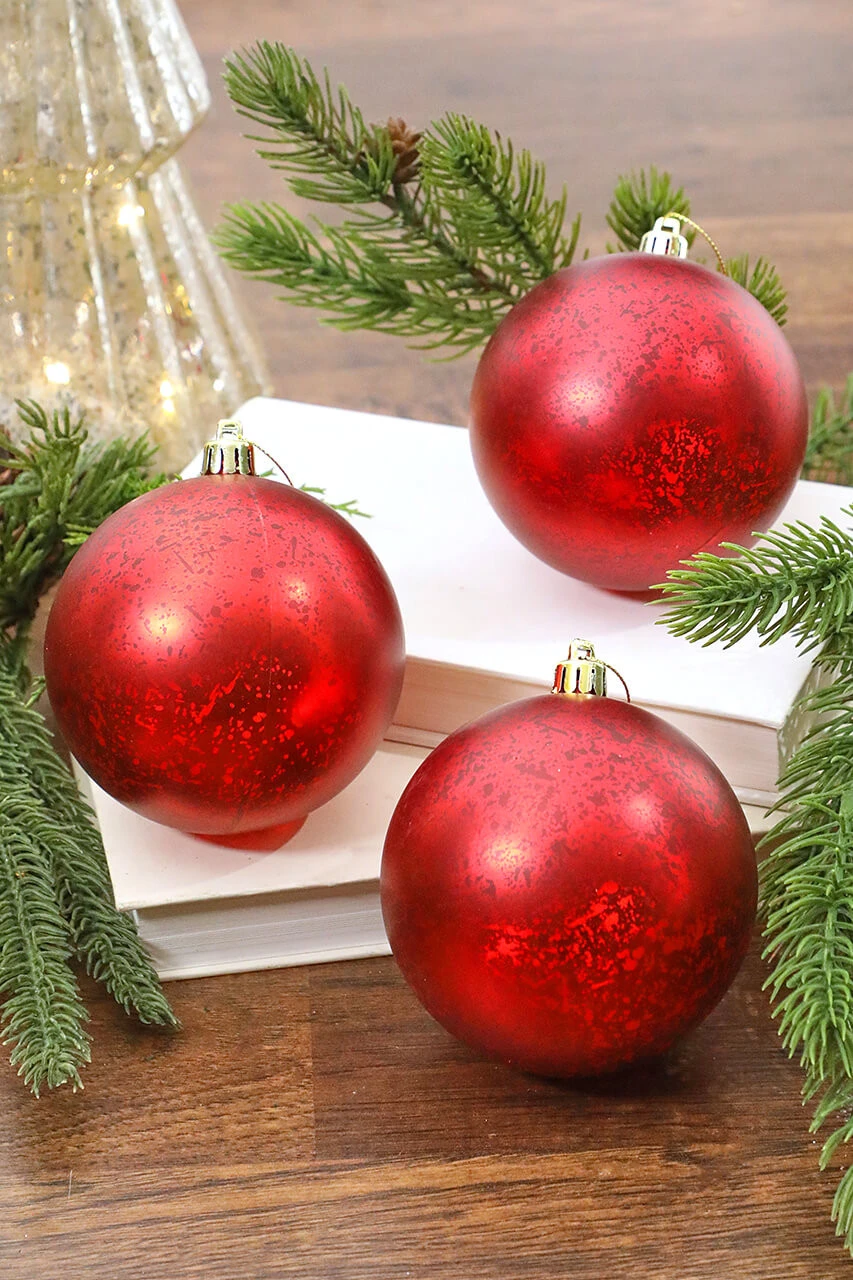 Complement all of your traditional red and gold ribbon, stems, and florals with these beautiful shatterproof ornament balls. The deep red mercury glass has a soft and smooth matte finish that will pop against your deep pine green tree and garlands. Invest in these timeless pieces to add variety and dimension to your holiday decor.