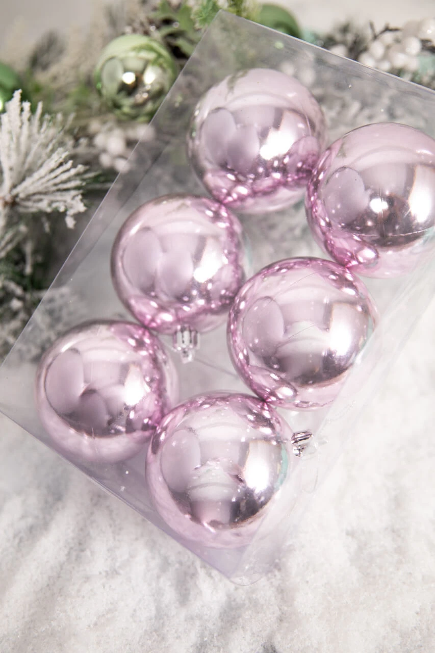3β Pink Shiny Ball Ornaments – Set Of 6