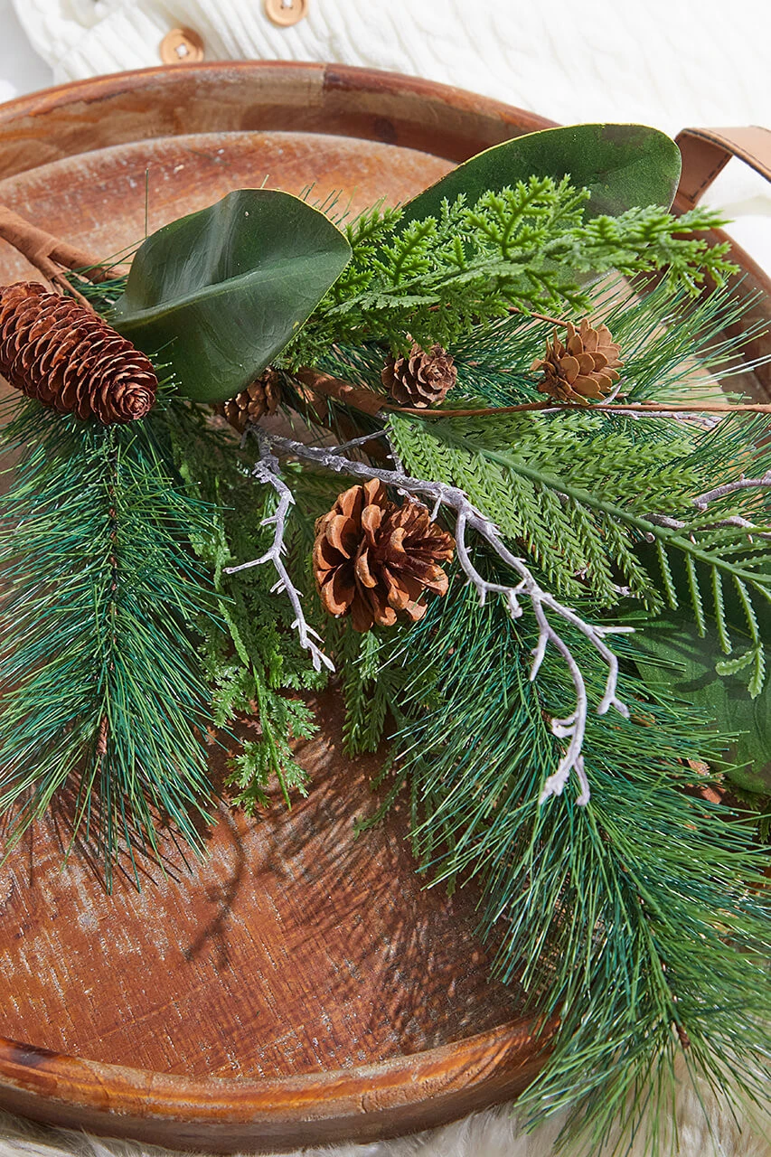 Breathe life into your festive decor with our 32″ Mixed Pine & Magnolia Leaf Cone Spray! As a key piece from our enchanting Winter Woodland Collection, this rustic beauty guarantees to lend a cozy, country charm to your holiday home. It’s your Christmas, beautified!