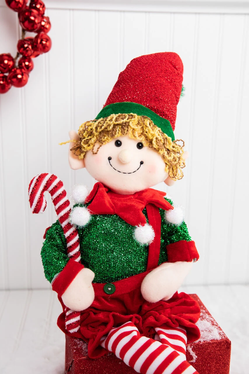 Add a dash of vintage glamour to your holiday decor with our 35″ Velvet & Sparkles Retro Sitting Elf! This eye-catching ornament merges classic Christmas motifs with a hint of sparkle and luxury. Place it by the tree, on your mantle, or anywhere you want a sprinkle of old-fashioned Christmas charm. Itβs the perfect addition to your red and green Christmas decorations!