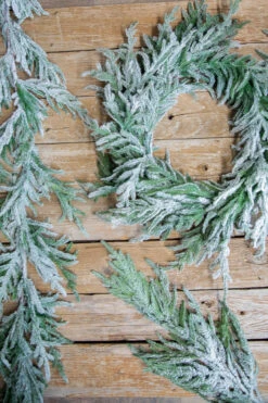 Create a magical snowy scene with this beautiful flocked spray. Snowy flocking covers the sage pine branches. Display alone, or add to the matching Norfolk Pine garland or wreath for a complete Christmas look.