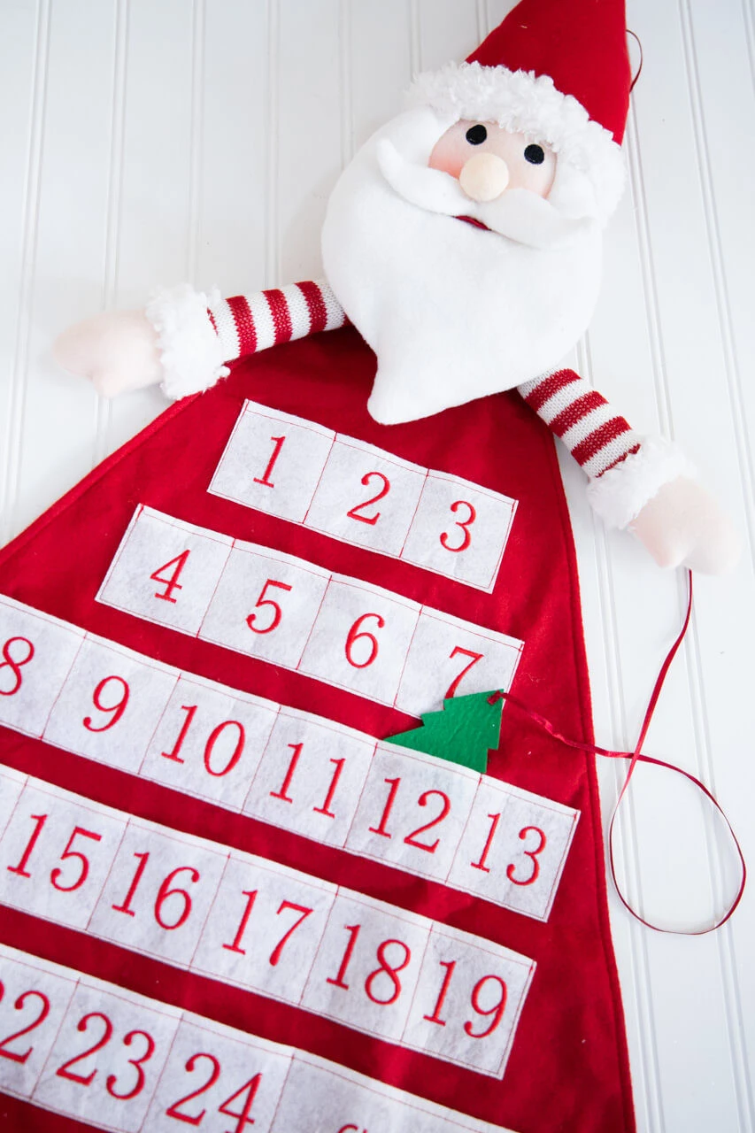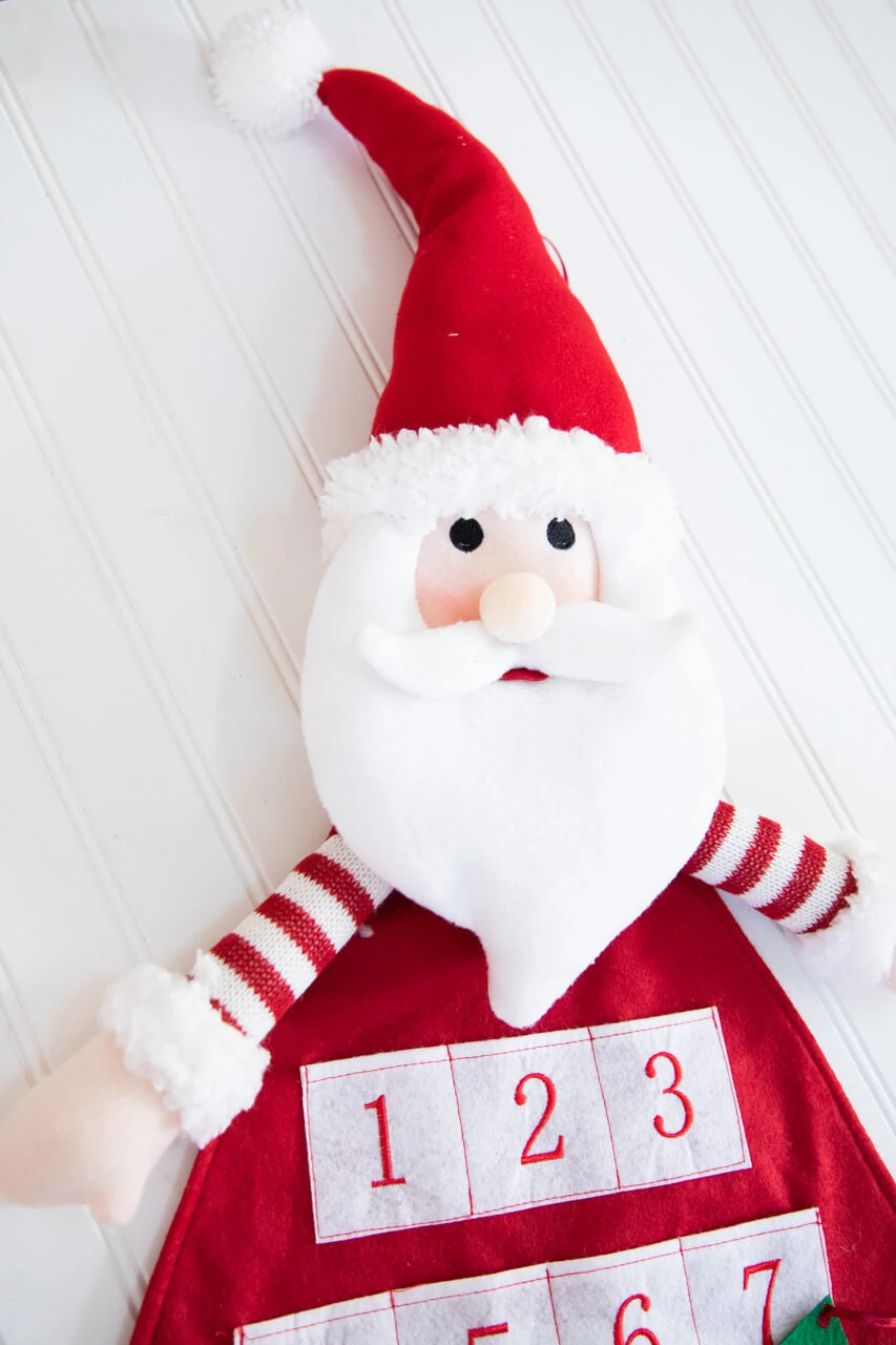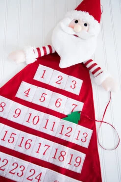 Countdown the days until Christmas with this charming 38β Santa Advent Calendar. Enjoy the fun of the Christmas season with the whole family with this fun and silly felt Advent calendar. Details include a whimisical Santa head, arms and legs attached to a felt calendar. Each day brings a new surprise with special daily treats you can keep hidden inside (treats not included)! Keep the holiday cheer alive in your home with this magical Advent calendar.