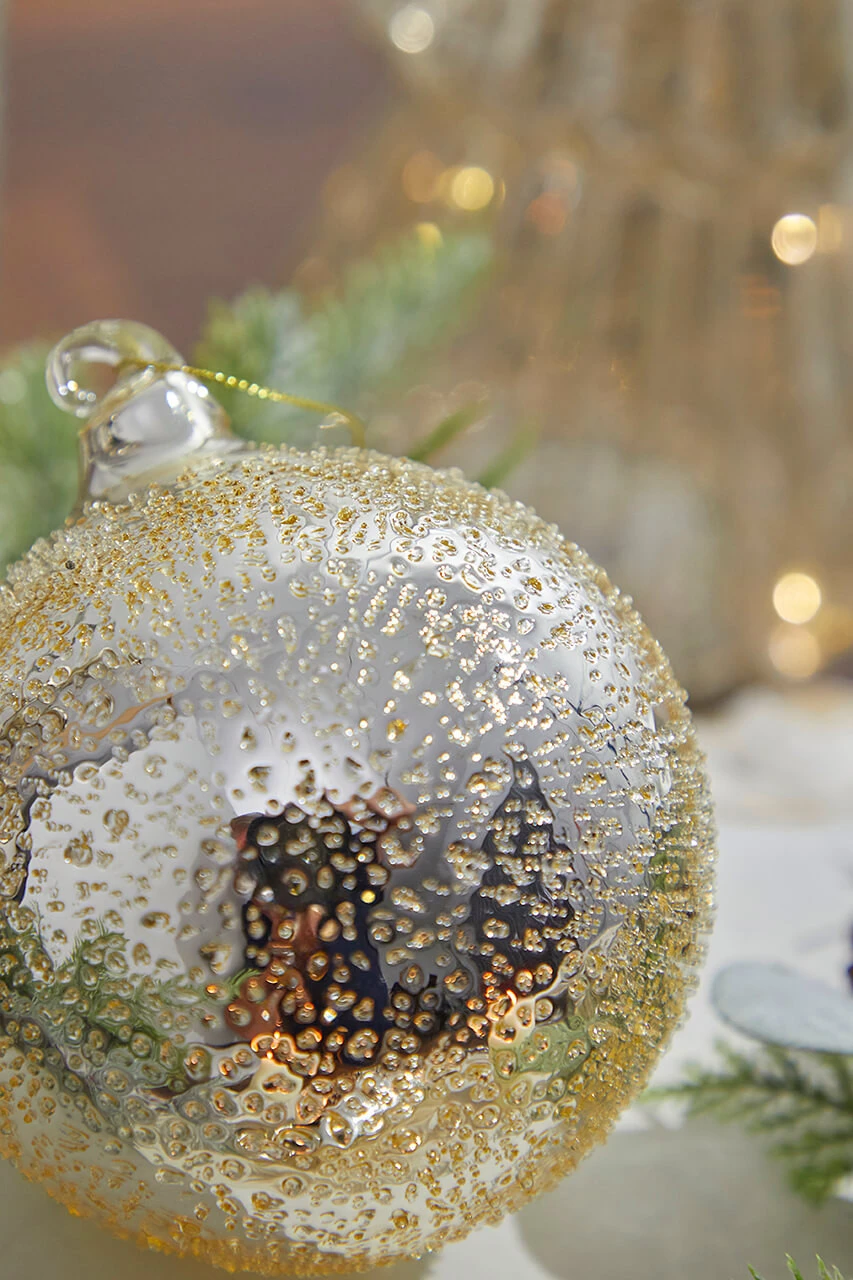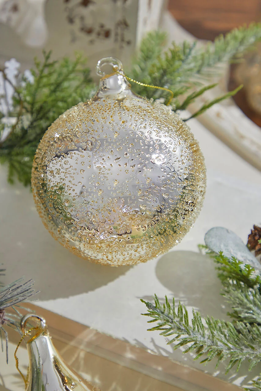Discover next-level glam with stunning texture and shine! Elevate your decor to new heights of elegance with our 4″ Glass Dimpled Ornament. Awash with stunning texture and an undeniable shine, this masterpiece will bring a refreshing touch of shine to your white and gold Christmas decorations. Choose from two captivating options, each radiating a unique charm, designed to mesmerize and inspire. So why wait? Dive into the world of glamour and let your style sparkle!
