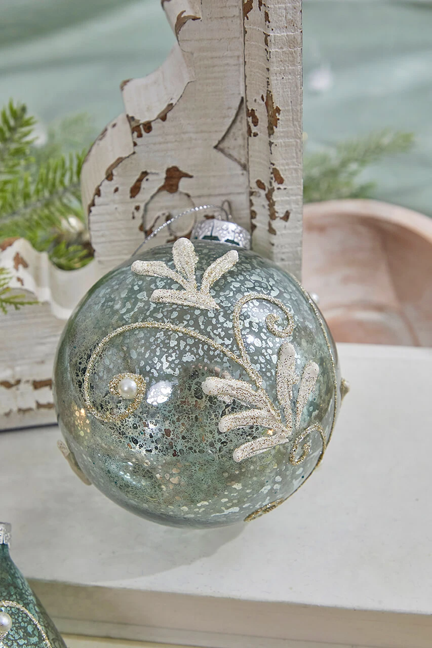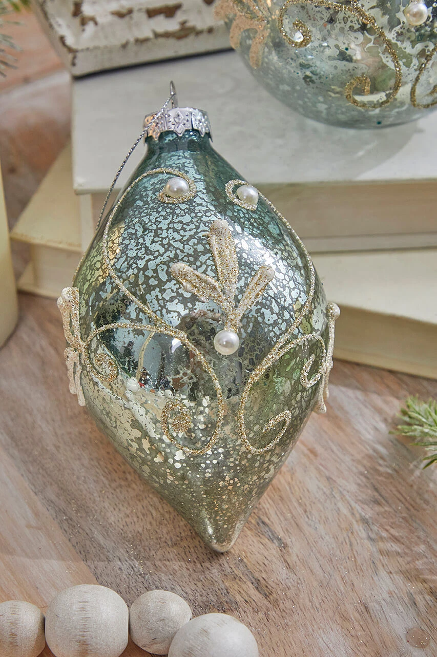4″ Shiny Mercury Glitter Bead And Pearl Ornament