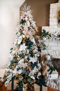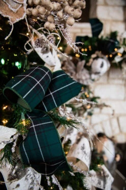 This modern Plaid Checks Tafetta Fused Ribbon brings a green, black, and white coloring to the next level. With classic yet clean lines, you’ll have a fresh and structured look to play with for your Christmas holiday designs. From wreaths to your Christmas tree, the options are endless โ particularly with the double-sided pattern, giving you creative freedom!