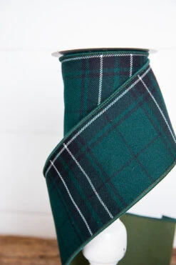 4″ X 5 Yard Hunter Green Plaid Checks Tafetta Ribbon