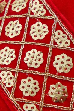 4β X 5 Yard Red & Gold Diamond Pattern With Sequins Velour Velvet Ribbon