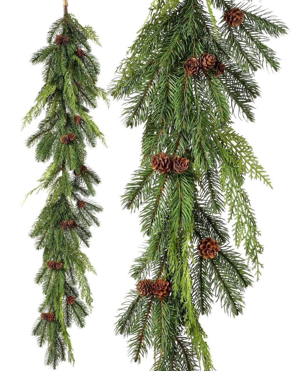 This 4-foot natural pine garland is sure to impress with its natural look and dynamic texture. Perfect as-is for a minimalistic look, or for pairing with a few natural sprays the will add a amplified look. Drape this two-toned beauty on a mantle corner or combine a few to hang over a door or wrap a bannister. Versatile and timeless, this woodland pine garland offers quality that will last for years to come.Β Β