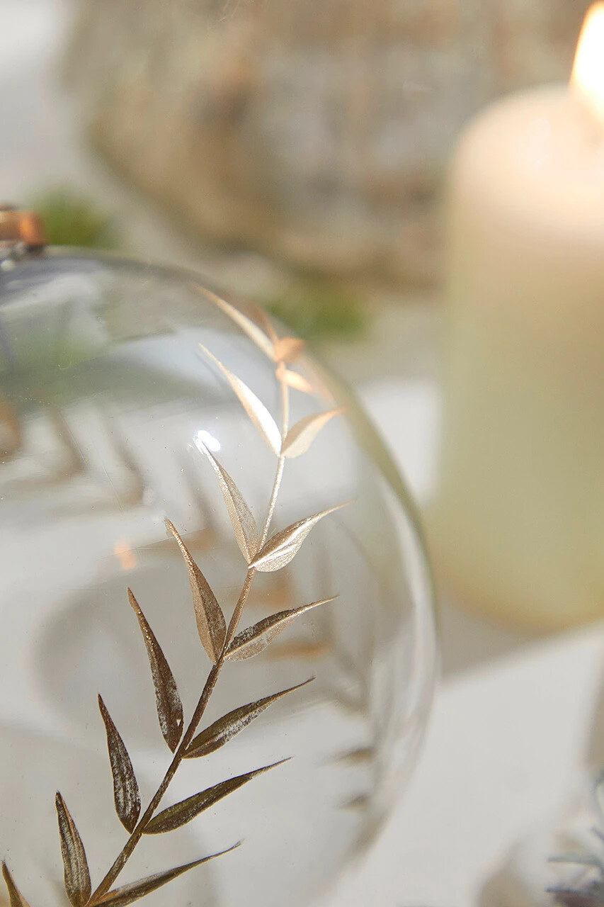 Elevate your holiday decor with our 5″ Golden Etched Laurel Glass Ornament. The intricate etched design and rich golden hue bring a touch of timeless elegance to your tree. Create a captivating ambiance that reflects the beauty of the season with this exquisite ornament.