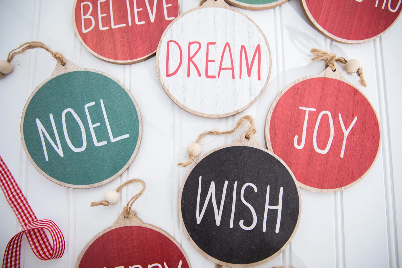 5β Holiday Wishes Wooden Disc Ornament- Set Of 10