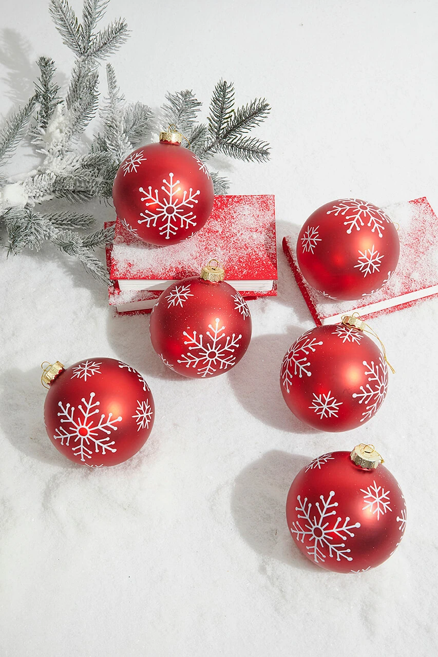 5″ Red Christmas Ball Ornaments – Set Of 6