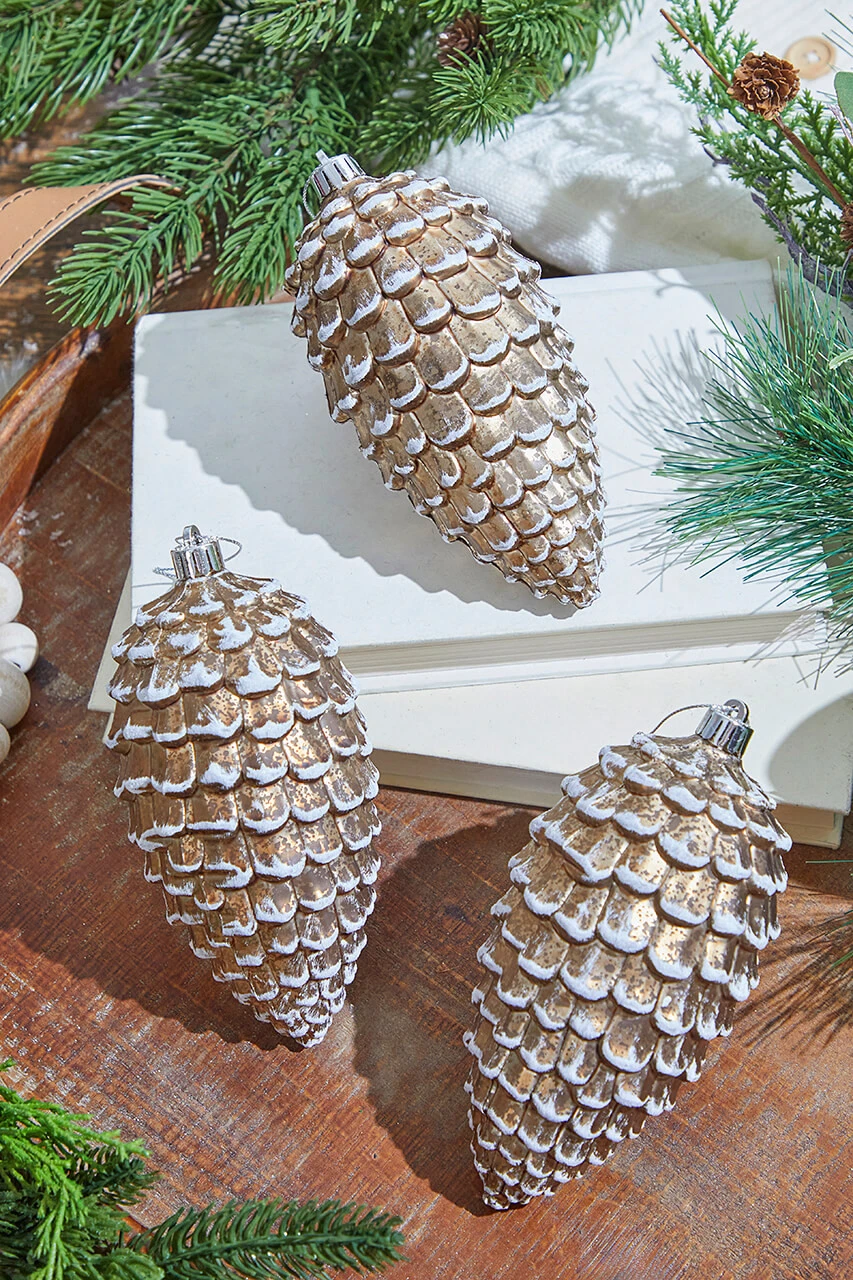 6.5″ Brown/White Snowed Pine Cone Ornament Box – Set Of 3