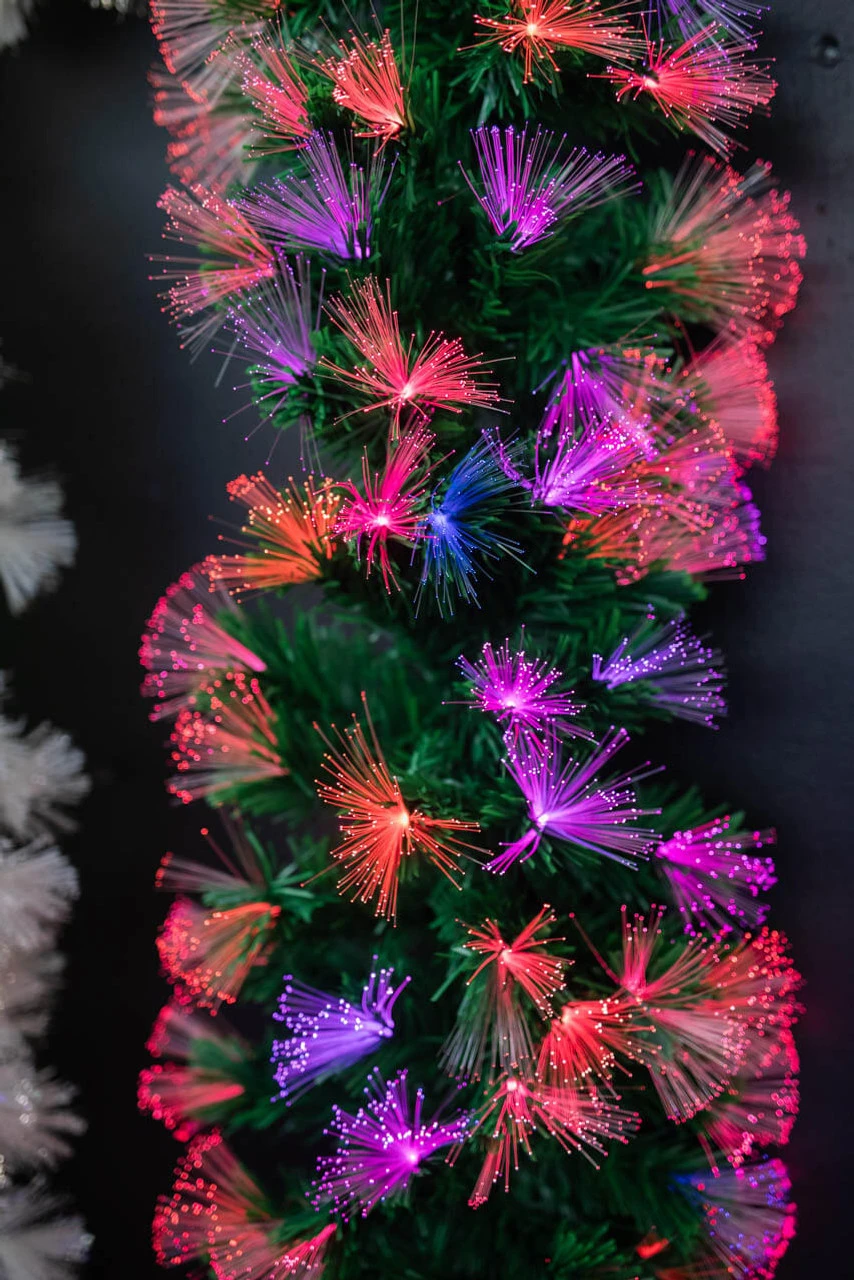 Light up an indoor or outdoor space with our incredible and nostalgic fiber optic garland. The rich pine needles reveal sporadic bursts of color throughout that rotate through a variety of playful flash patterns, bringing the magic of the season to your home. Combine with our timeless fiber optic wreath for a coordinated look.