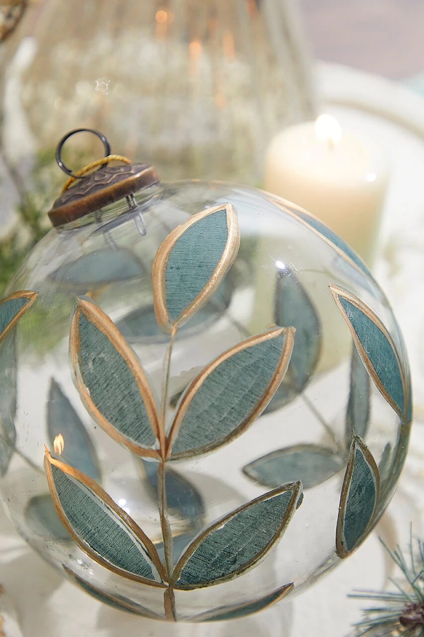 Discover the captivating beauty of our 6″ Painted Laurel Glass Ornament. This masterpiece crafted from clear glass and elegantly outlined with gold accents is more than just an ornament; it’s a work of art. The laurel leaf detail, traditionally associated with victory and honor, adds a touch of timeless sophistication. This ornament’s luminous quality will transform your living space, casting a unique glow that captures the eye and the heart. This piece goes beautifully with other pieces in our Oh Holy Night Collection.