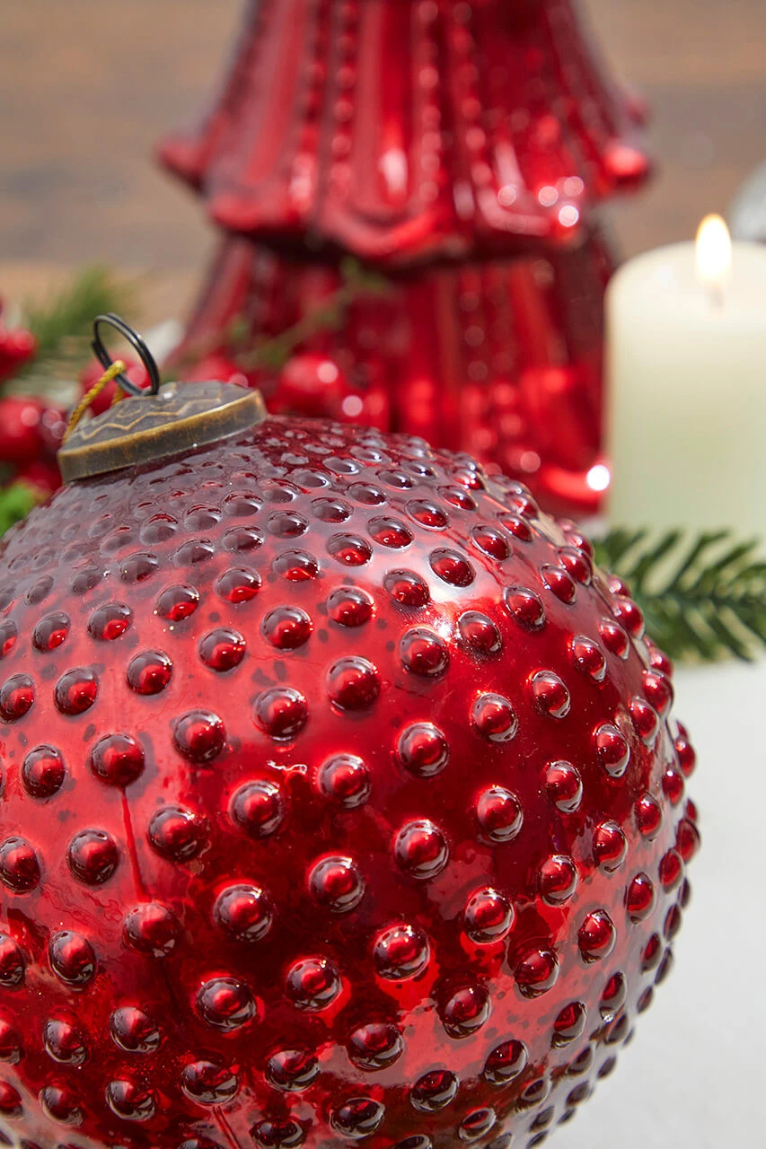 6″ Round Hobnail Ruby Mercury Glass Ornament