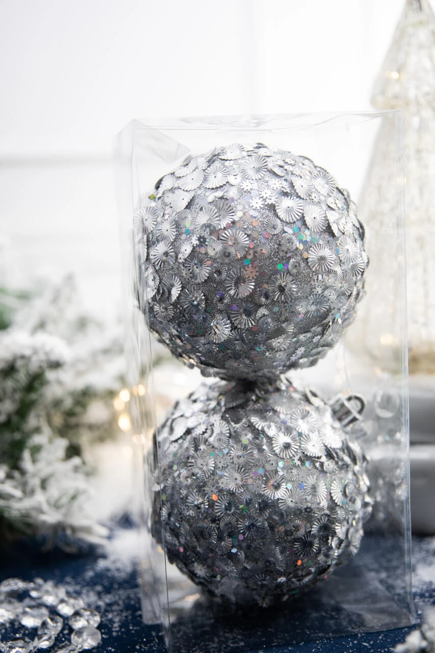 6β Silver Glamour Sequin Ball Ornaments – Set Of 2