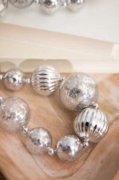 Welcome the winter season in style with our 60″ Mercury Ball Ornament Garland. Featuring various sized mercury-like ornaments with complementing shiny textured ornaments, this garland is the perfect accent to your winter wonderland. Embellish your white Christmas decorations with this silver pop of glamour and create an icy atmosphere that you and your guests will love.
