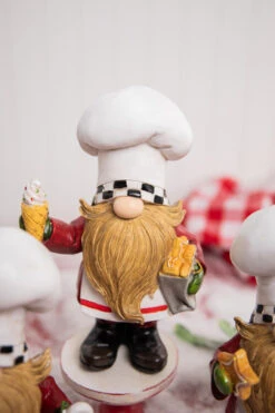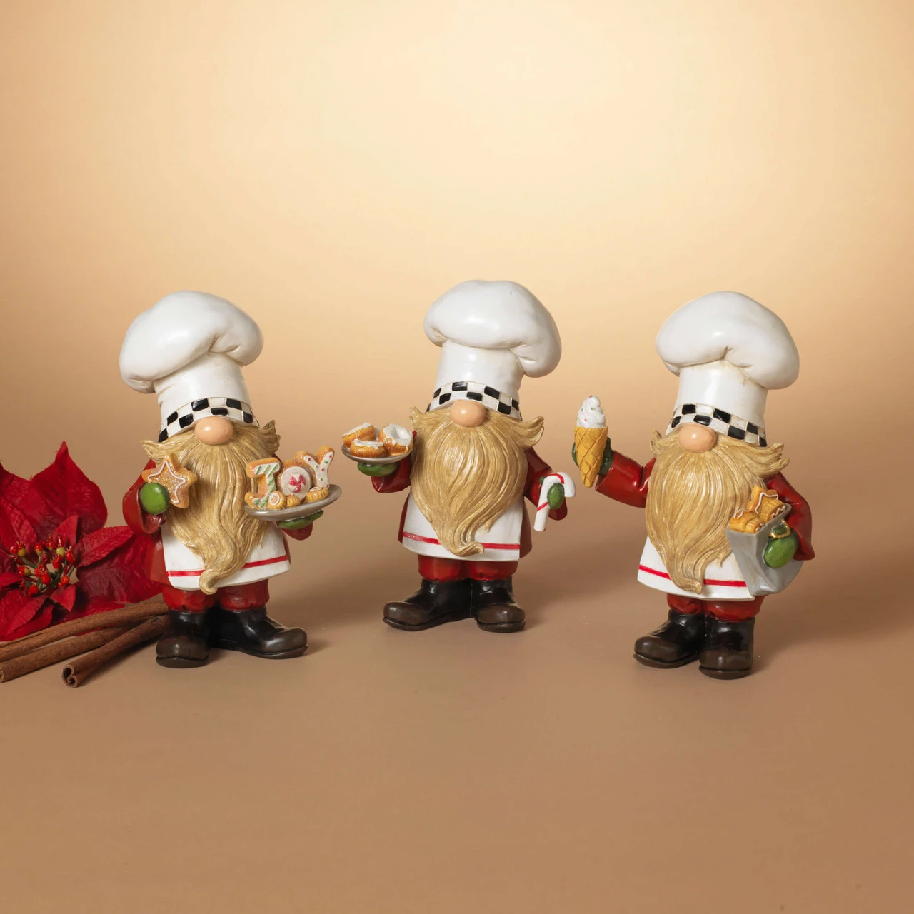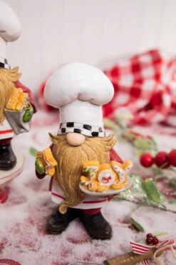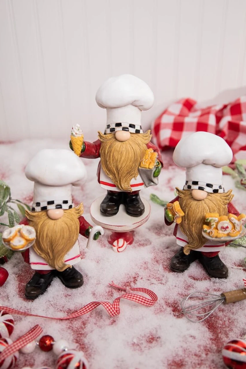 Make sure to spruce up your holiday decorations with this 8.5″ resin chef gnome figurine. Choose from three cheerful and delightful options, each holding assorted treats.ย A perfect addition to your gnome Christmas decorations!