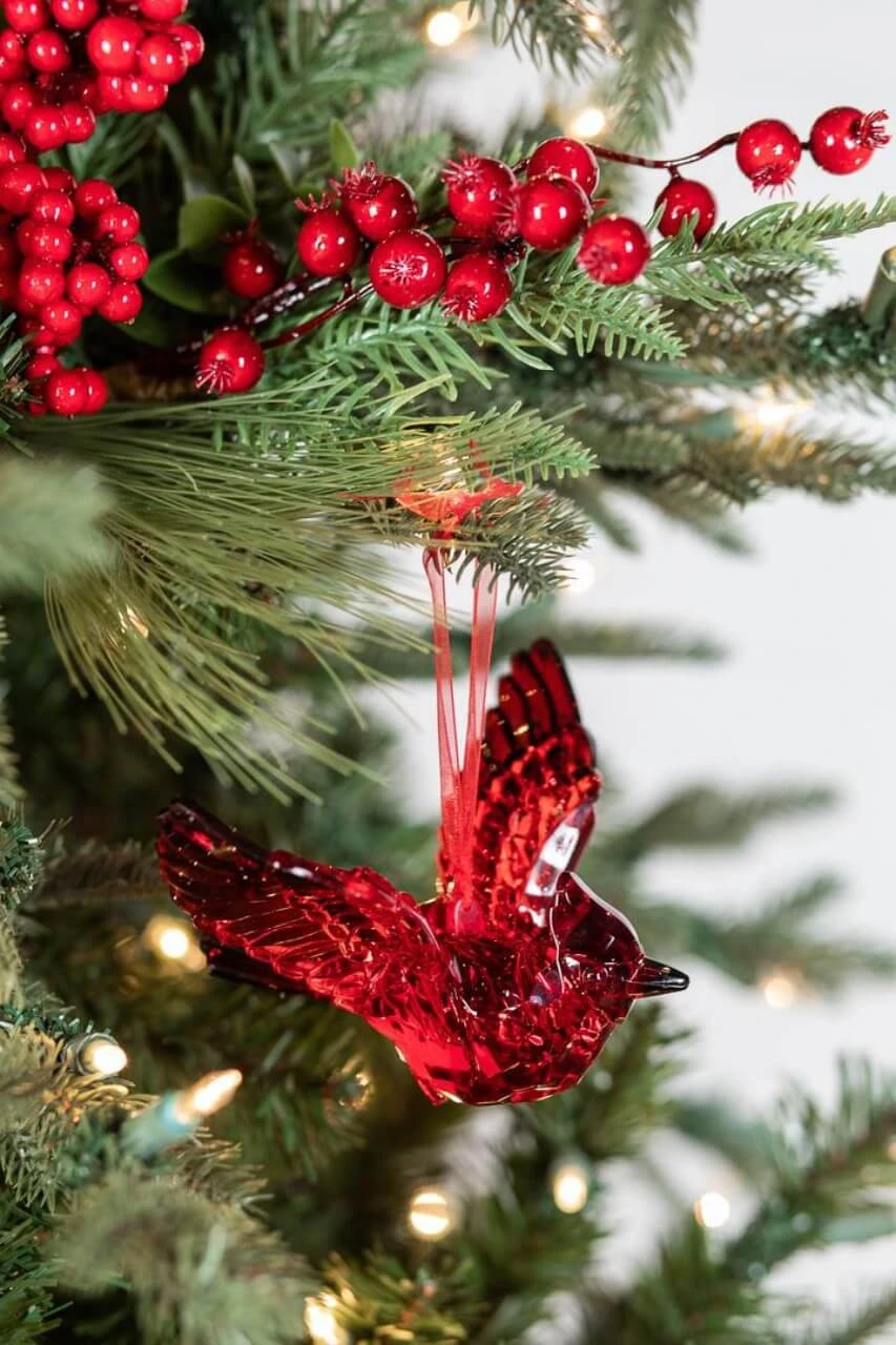 These beautiful and delicate 3.5″ acrylic red cardinal Christmas tree ornaments serves as a reminder that our loved ones are “always near”. The graceful look of glass detailing on this cherry red cardinal will glisten with lights in the background, creating the perfect, calming touch on any Christmas tree. These Christmas ornaments is also a perfect gift to give loved ones, creating memories that last.