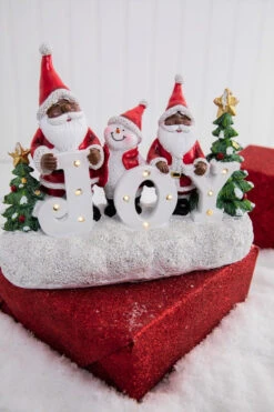 African American Santa W/ Snowmen Lighted Holiday Resin Figure