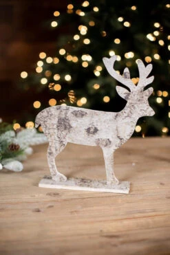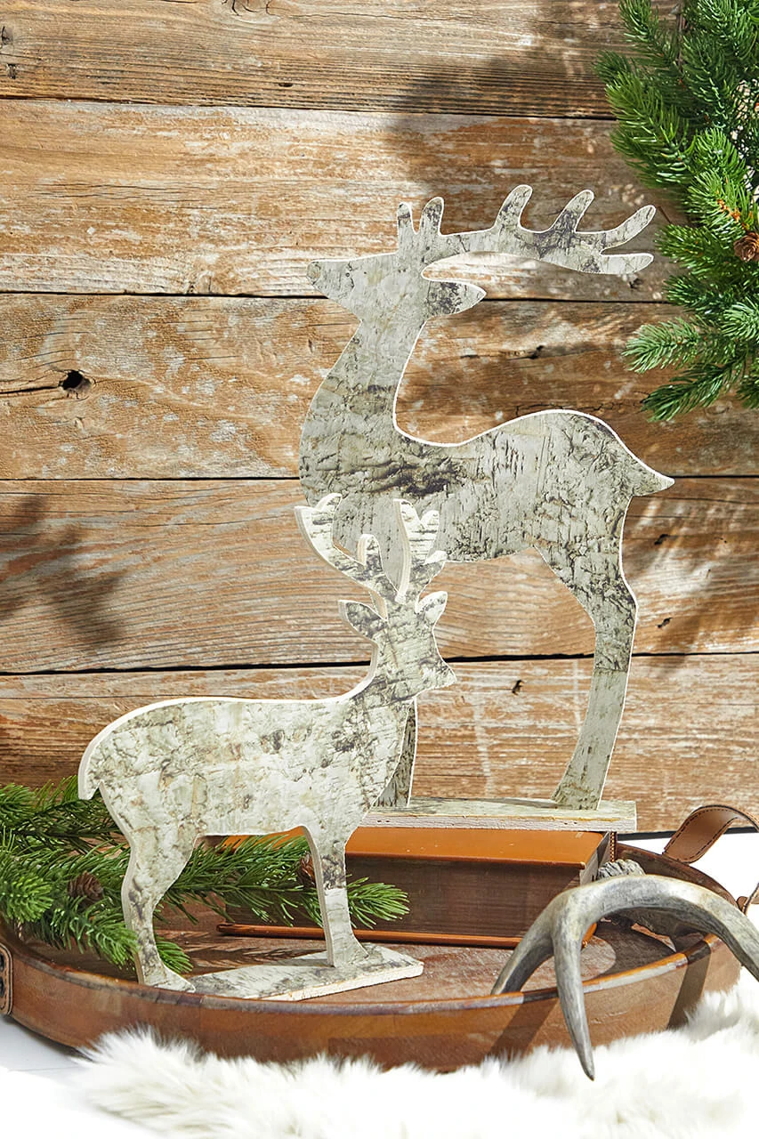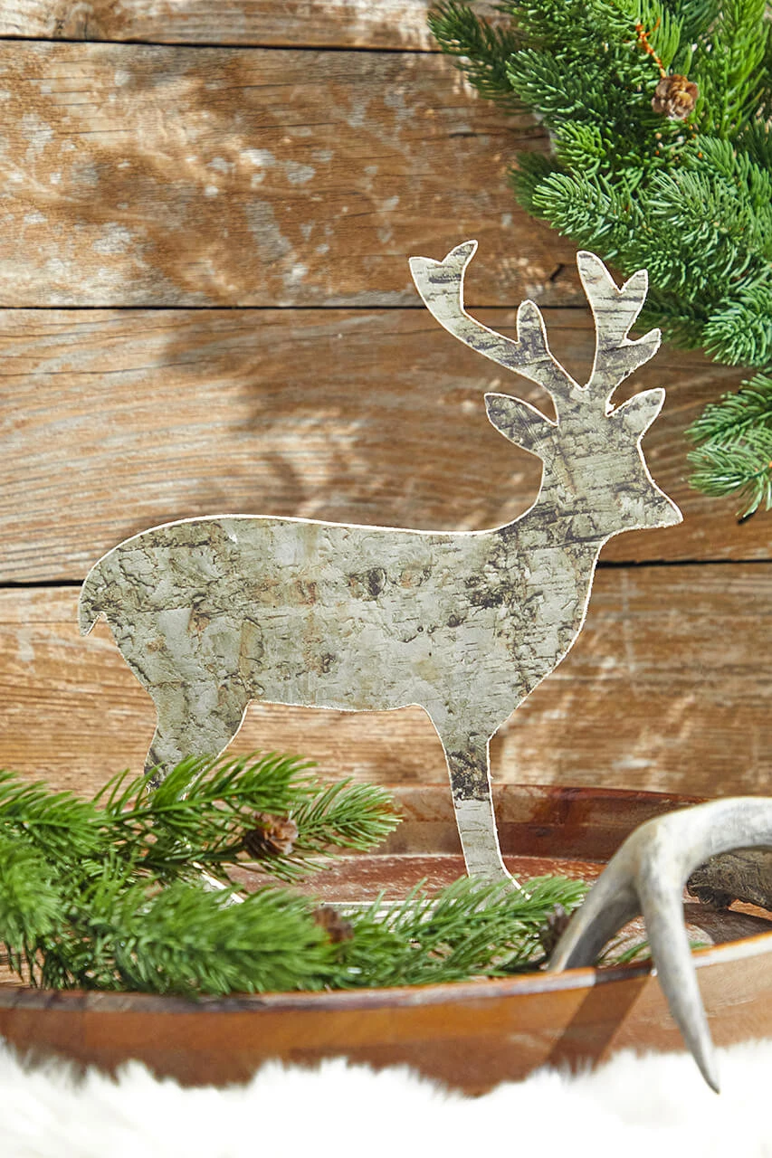 Our 11″x10″ birch paper standing deer will bring the earthy colors of nature into your holiday decor collection. The classic birch tree texture displayed on this endearing reindeer is a perfect way to add rustic beauty and a calming touch to any display shelf or winter scene. This cozy, neutral piece is featured in our Woodland Collection.