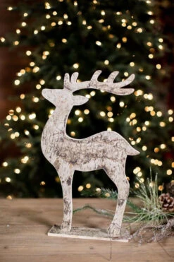 Our 16″x10″ birch paper standing deer will bring the earthy colors of nature into your holiday decor collection. The classic birch tree texture displayed on this endearing reindeer is a perfect piece to add rustic beauty to any display shelf or winter scene. This cozy neutral piece is featured in our Woodland Collection.