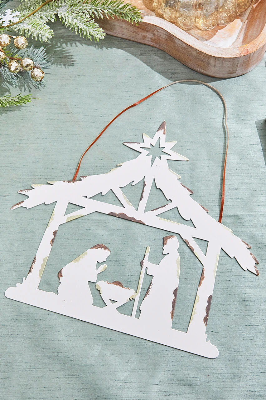 Make a statement in your home this holiday season with this stunning Wall Hanging Nativity with Holy Family. Crafted with an eye-catching distressed detail, this masterpiece is the perfect way to honor the timeless story of Jesus’ birth. Featuring a classic manger scene of Mary, Joseph and baby Jesus, this elegant piece is a beautiful addition to any rustic Christmas collection.